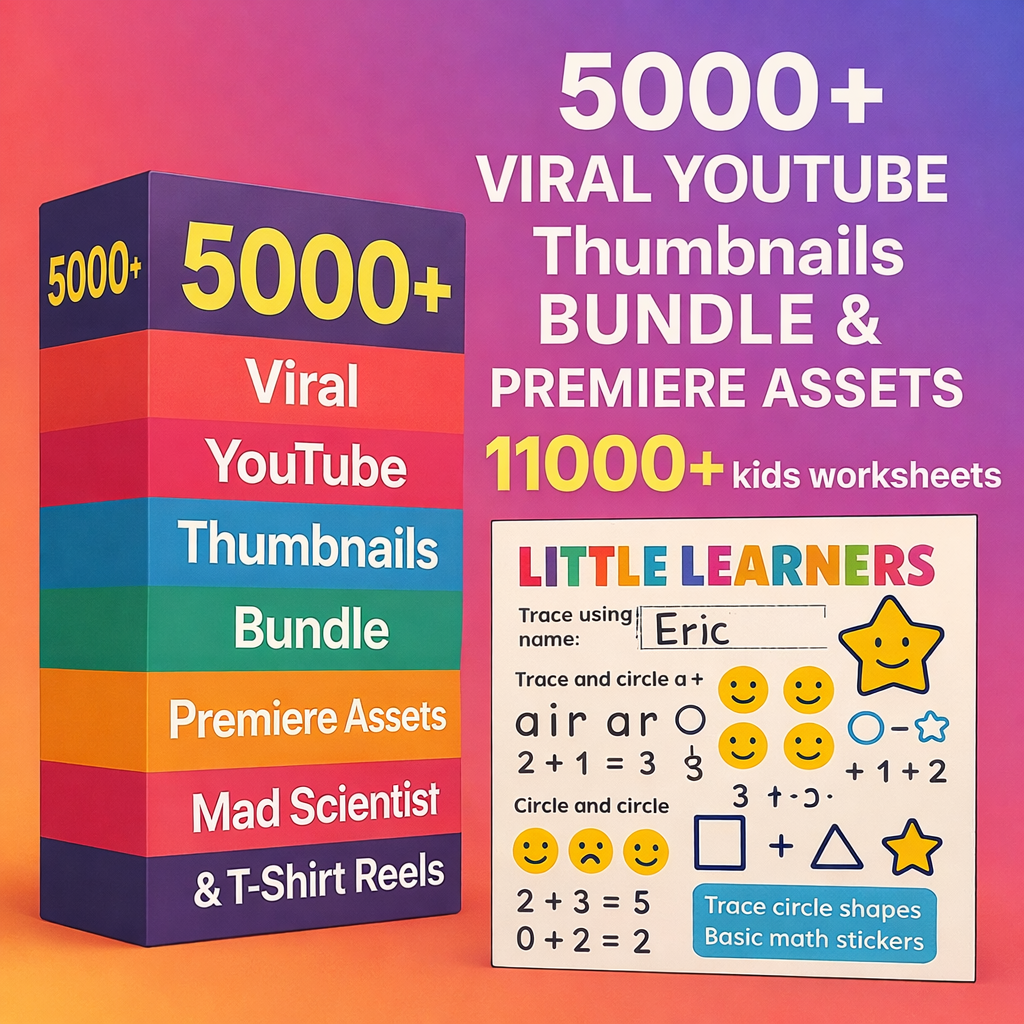 5000+ Viral YouTube Thumbnails & Premium Digital Assets 11000+KIDS WORKSHEETS